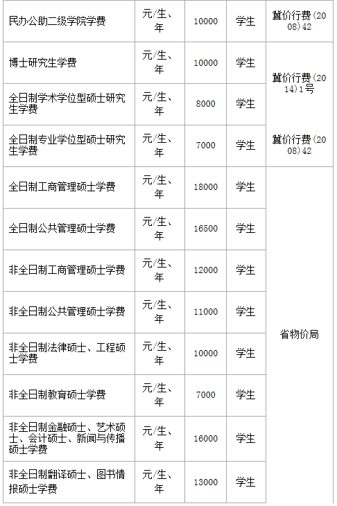 (一)学费标准