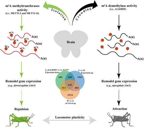 图1m6A RNA修饰调控飞蝗聚群行为