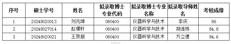 根据《河北大学硕博连读研究生招生培养工作管理办法》(校政字〔2024〕39号)文件精神以及学校《河北大学2026年硕博连读研究生招生录取办法》要求,学院开展了仪器科学与技术专业硕博连读研究生考核工作,现将仪器科学与技术专业2026年硕博连读研究生考核成绩公示如下: